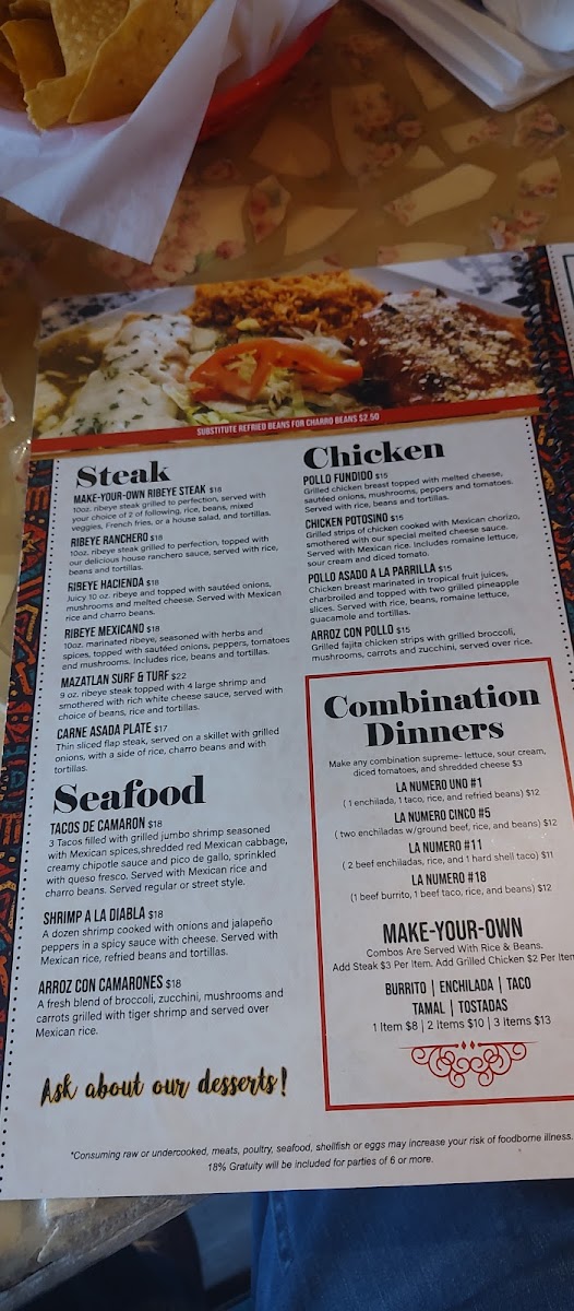 A 9 oz. ribeye steak grilled to perfection, topped with our delicious cheese sauce. Served with rice, beans and tortillas