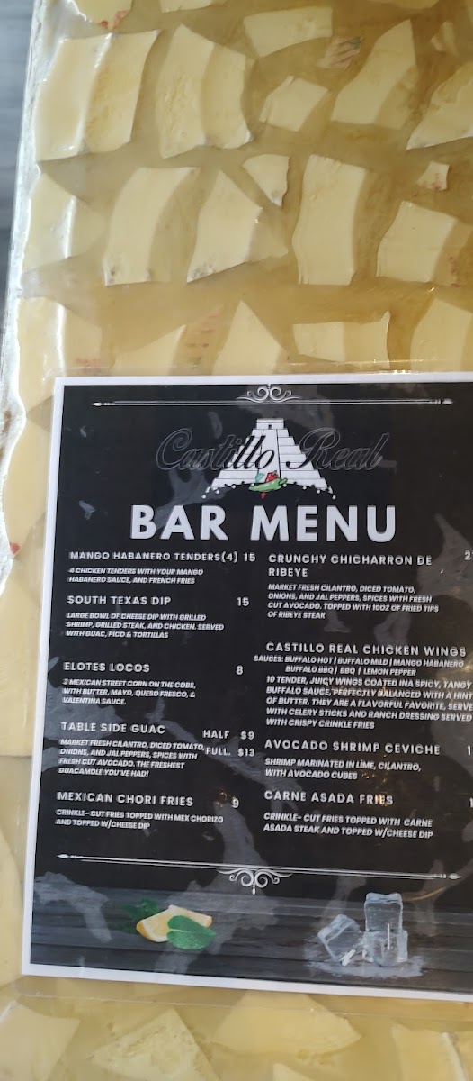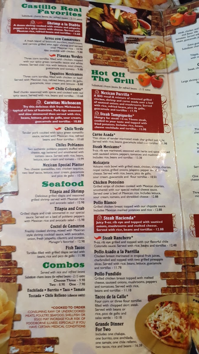 Fried flounder filet with 4 grilled shrimp, served with charro beans, crinkle fries, a scoop of Castillo Real coleslaw, and a scoop of special sauce