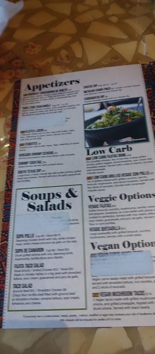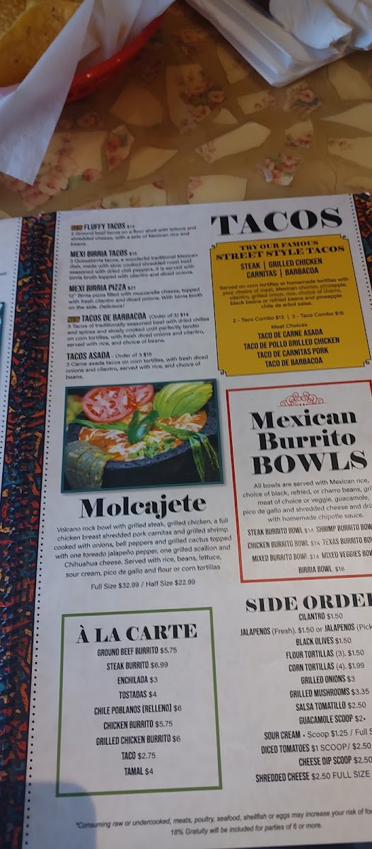 A big 12 flour tortilla filled with grilled steak or chicken, onions, rice, & a touch of beans. All topped with cheese sauce. Includes guacamole, pico de gallo, & sour cream